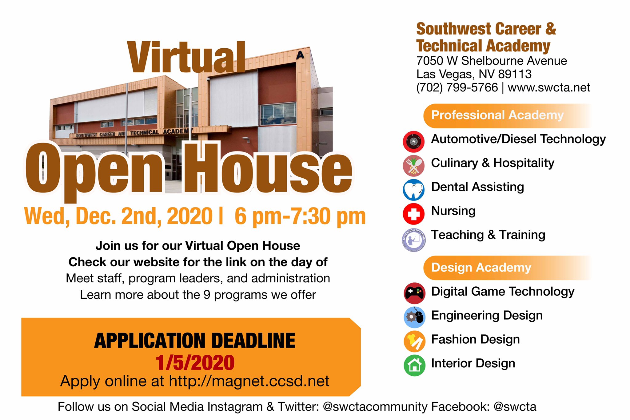 Southwest Career Technical Academy On Twitter Save The Date Swcta Virtual Magnet Open House On Wednesday December 2nd From 6 7 30 Pm Link Will Be Posted On Https T Co X1lrhf4xni The Day Of Swctacoyotes
